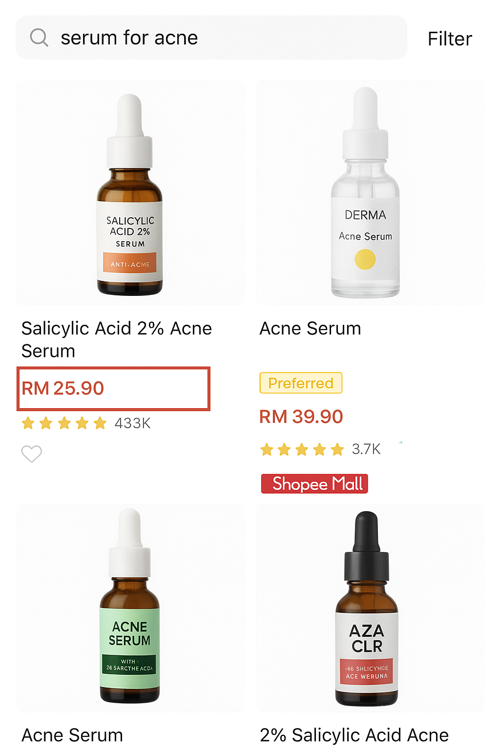 And that’s before you even touch e-commerce: Shopee listings, TikTok Shop listings, search placements, feed posts, vouchers, promos…